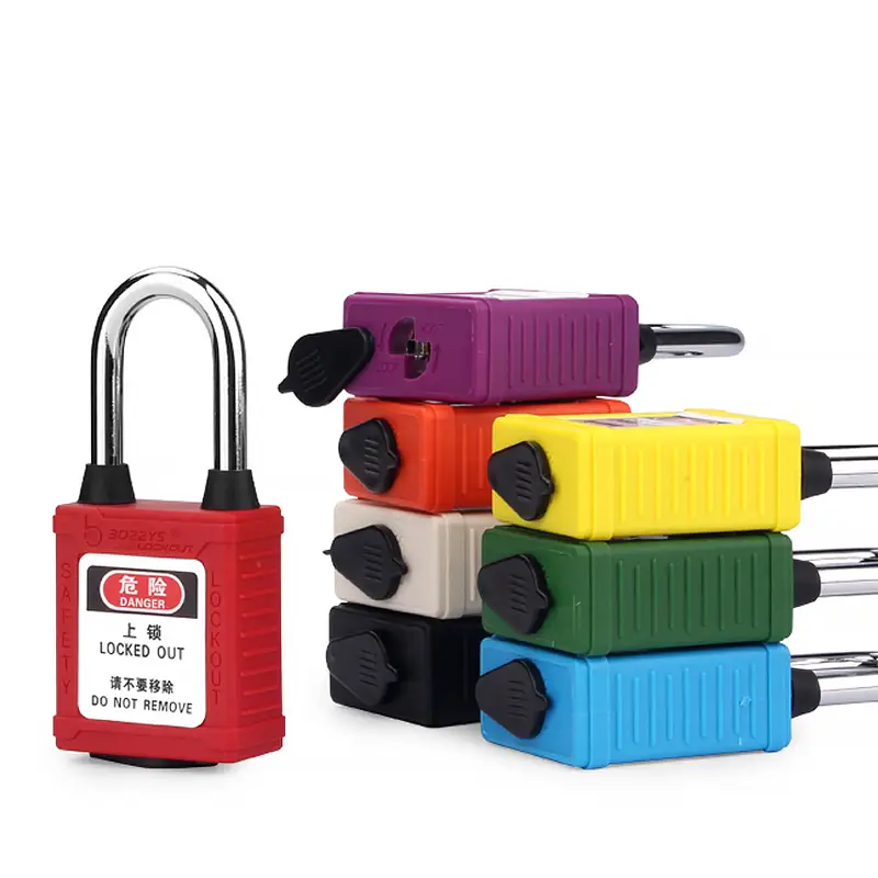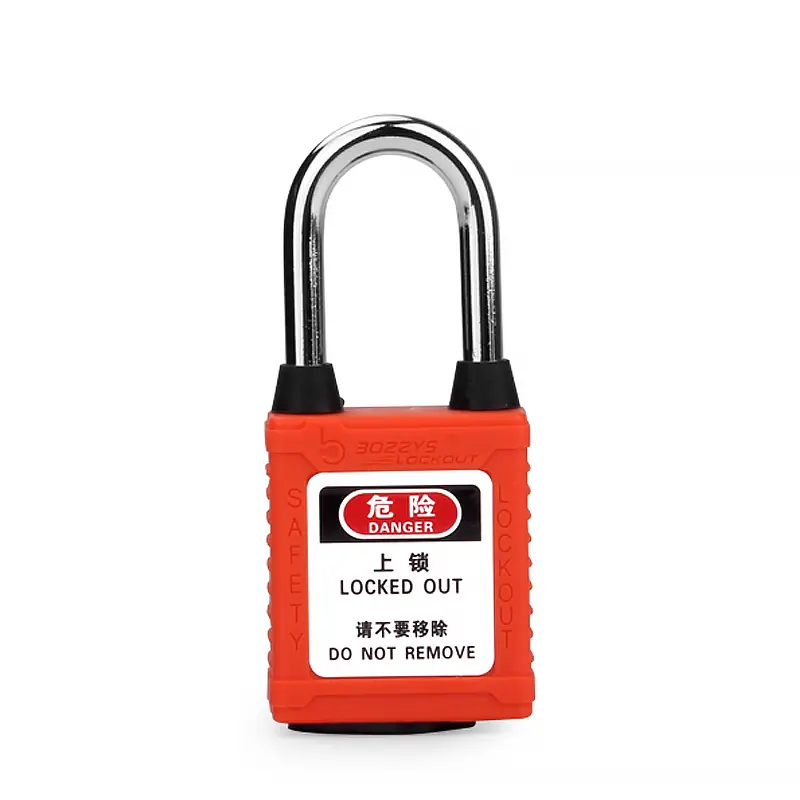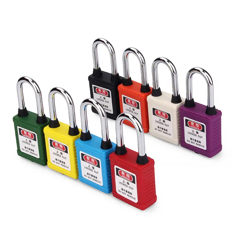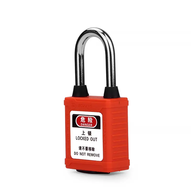 dust-proof safety padlocks has (Ø6mm, H38mm) hardened steel shackle, which are suitable for Industrial lockout-tagout use on conductive areas,to prevent accidental operationdust-proof safety padlocks shackle and the bottom of the lock body are designed with dust-proof plugs, which can effectively prevent dust from entering the lock body and cannot be unlocked.Padlock cylinder is made of zinc alloy , which can be made of copper, stainless steel and other materials, and the auto popup lock shackle also can be customized. Zinc alloy cylinder is 12-14 pins , it can realize that more than 100,000pcs padlocks do not open each other.Copper cylinder is 6 pins , it can realize that more than 60,000pcs padlocks do not open each other.Key management system: Keyed differ,keyed alike,differ&master key,alike&master keySafety Padlock has key retaining feature,and key cannot be pulled out in open state, in order to prevent the key from being lostThe non-conductive, non-sparking shell of the padlock can protect workers from electric shock.The key of the padlock can be customized with different color key covers, fast identification with color matched lock and key.Comply with OSHA standard: 1 employee = 1 padlock = 1 key.Padlock has a label with text: “Danger locked out”/”Do not remove, property”. Label can be customized.The lock body and key can print same code, which is convenient for management.
