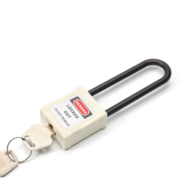 The non-conductive, non-sparking shell,Resistance of chemical, extreme temperatures and Anti-UV of the padlock can protect workers from electric shock.