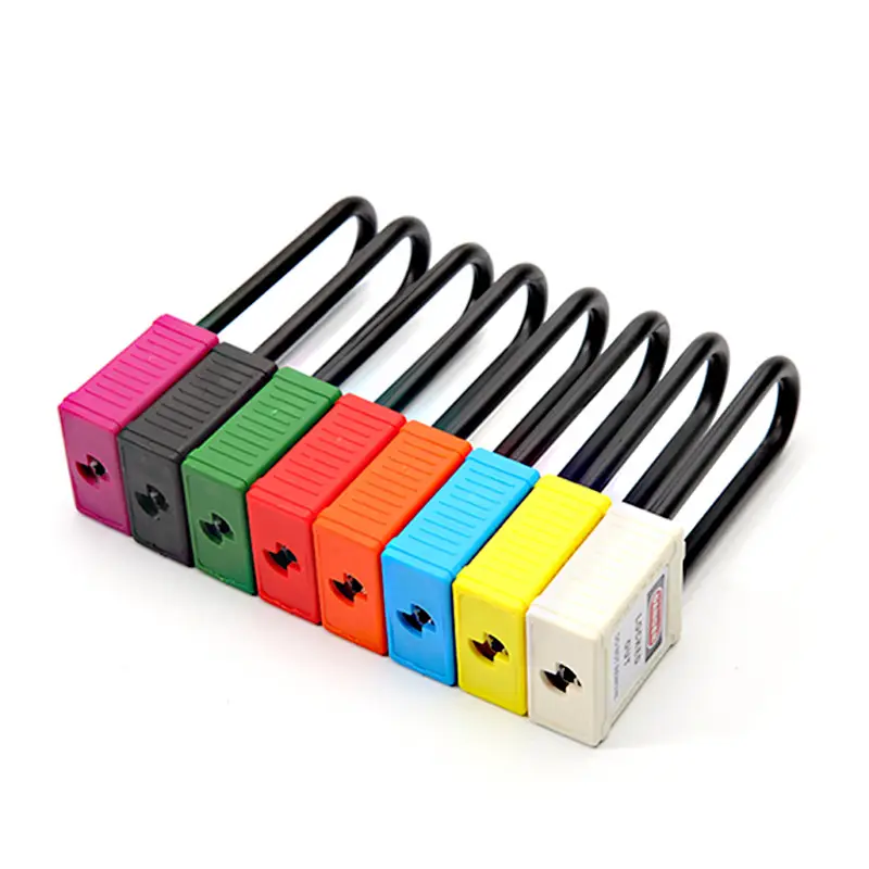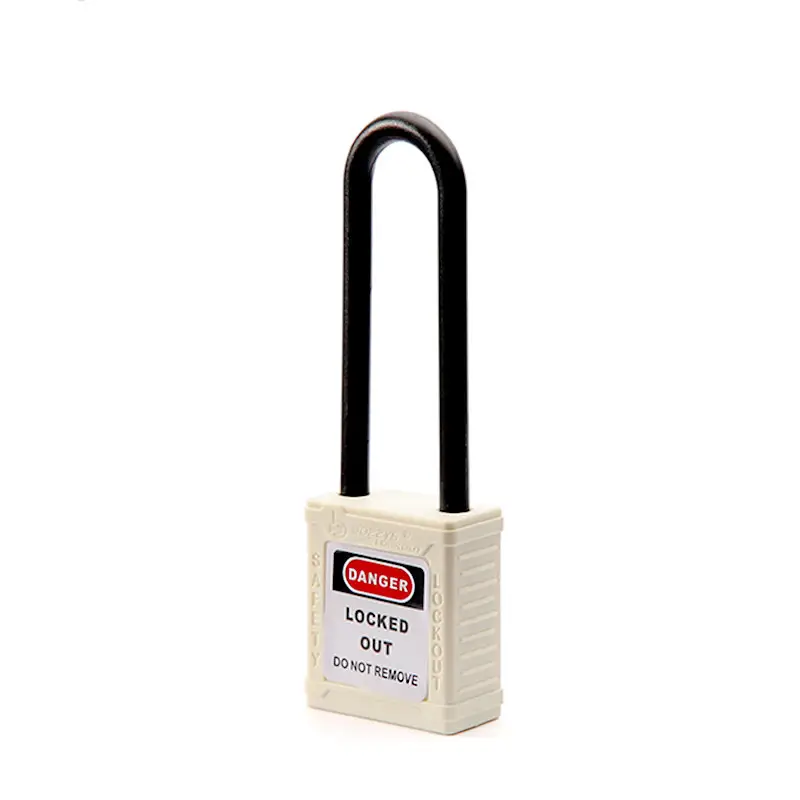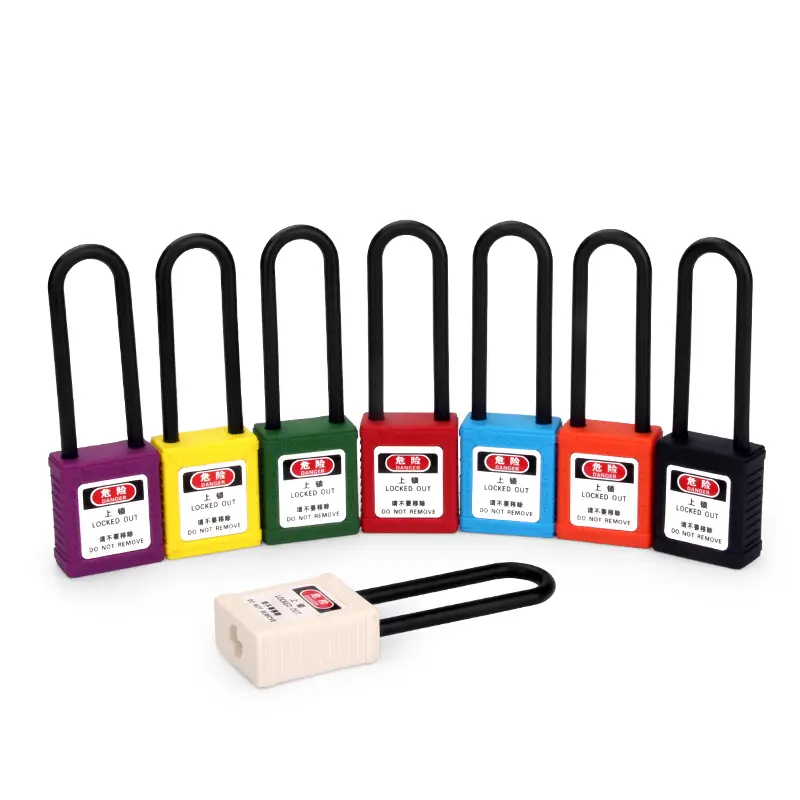 Safety lockout padlock has(Ø6mm, H 76mm) nylon shackles, which are suitable for lockout and tagout of electrical equipment.